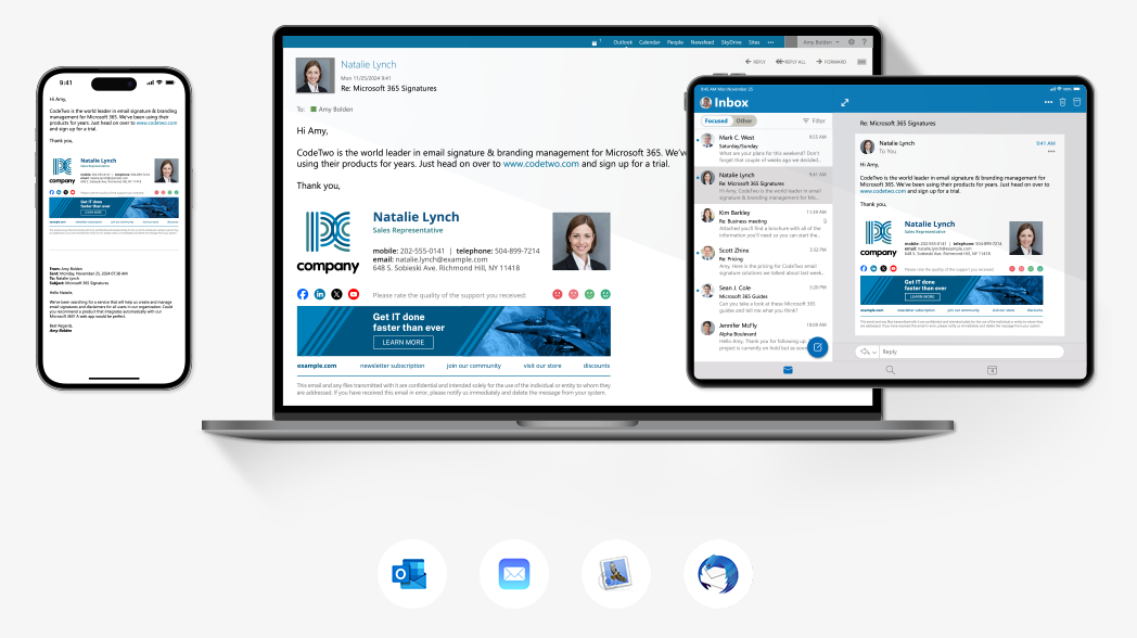 CodeTwo geht weit über eine einfache Signaturverwaltung hinaus und bietet eine ganzheitliche Plattform für Ihre digitale Unternehmenskommunikation: