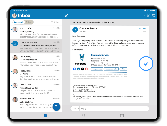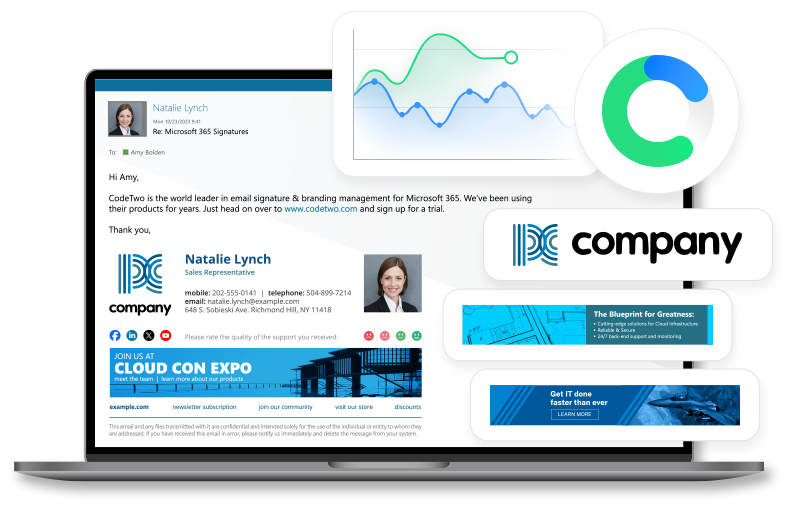 Während künstliche Intelligenz und neue Kommunikationstechnologien die Geschäftswelt verändern, bleibt die E-Mail das wichtigste offizielle Kommunikationsmittel. CodeTwo E-Mail Signatur stellt sicher, dass Sie diese zentrale Touchpoint optimal nutzen - heute und in Zukunft.